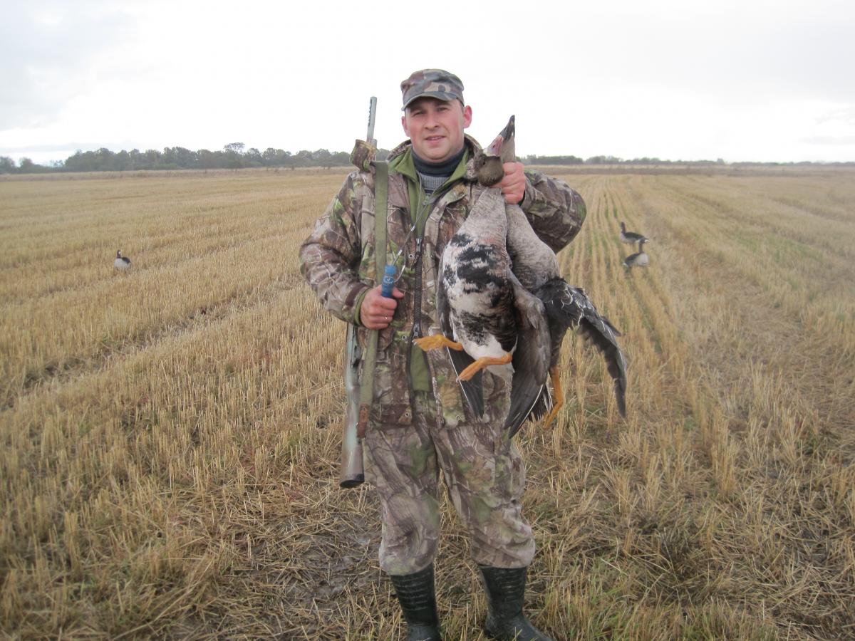 Подумываем отсиживаться в кустах, наверное не так мокро будет.Лежать на поле без американского гробика не прельщает.При таком наличии гуся надежда на удачу есть даже при стрельбе из куста или канавы.