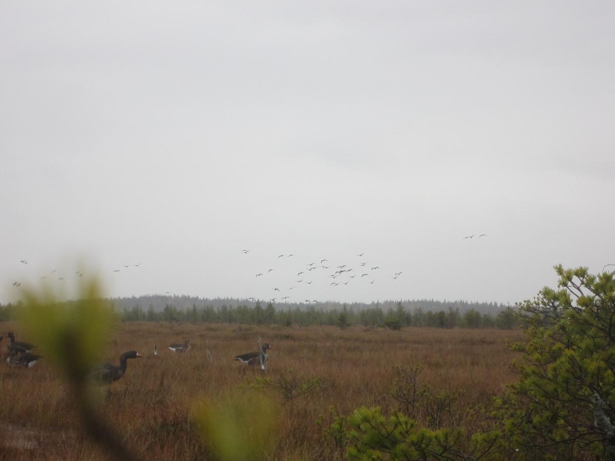 Суейчас утром останавливался смотрел гусей в бинокль - огромная стая на поле и