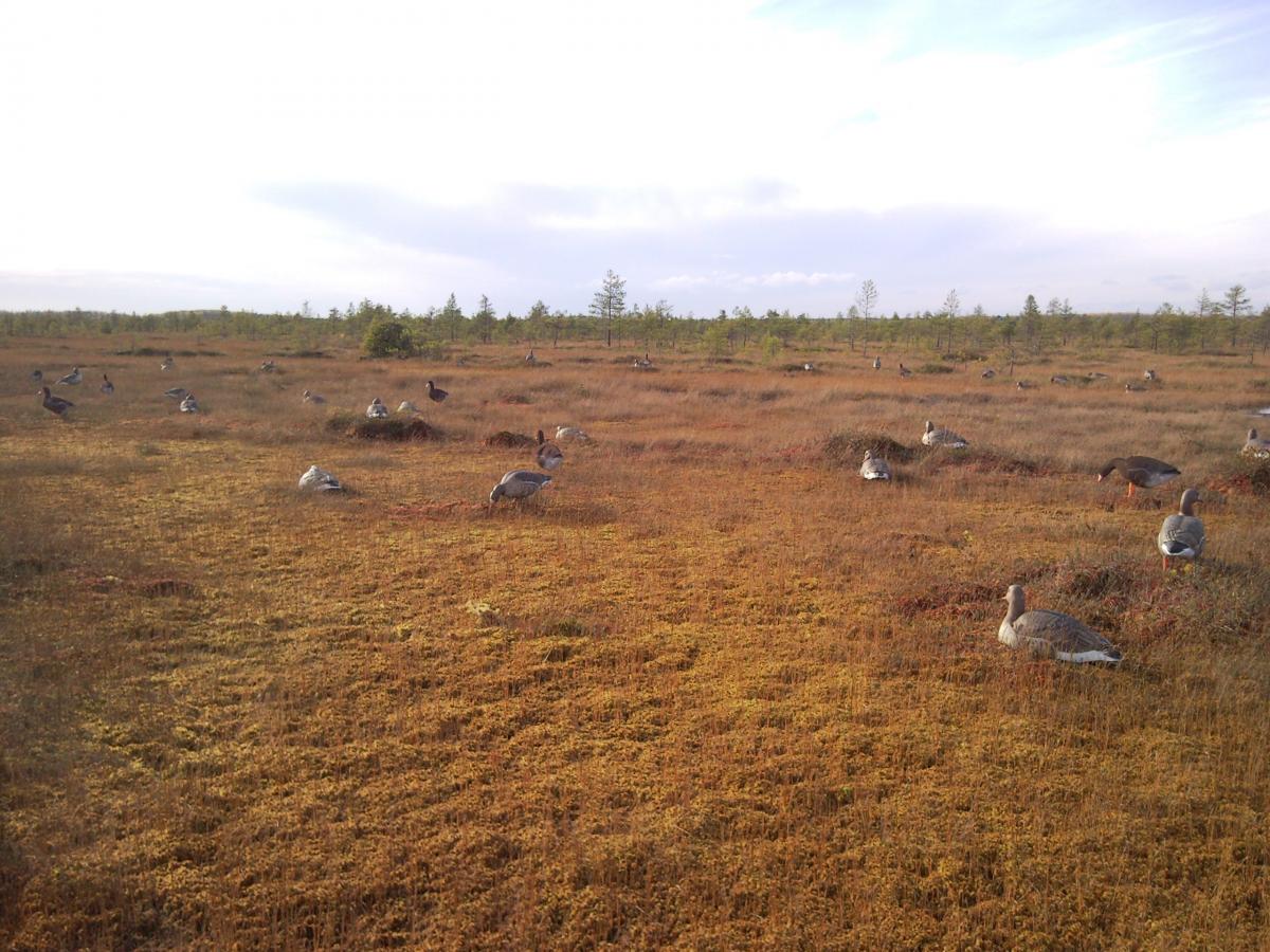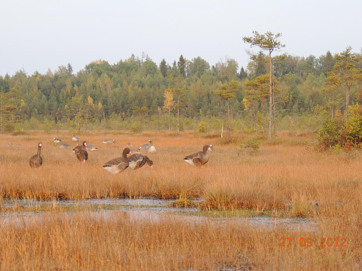 Лодейнопольский район. Суббота-воскресенье после пяти вечера начинал переть гусь. Стаи по сотне и более голов. В основном на кислороде. Причем некоторые на столько высоко, что только точки на небе видно, из которых клин состоит.