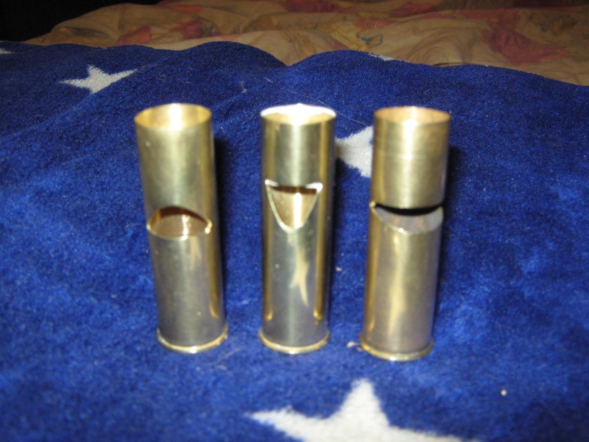 Могу выложить чертежи.Но,так как всё делается вручную,не факт,что точные размеры дадут результат нужный.Нужно подгонять прорези и отверстия до получения чистого звука,при закрытом капсульном отверстии и открытом,в выдвигаемом манке,также звук должен быть чистым в любом положеннии.Даже маленький фактор может повлиять на звук,к пр.(срез на пробке под небольшим углом,или растояние между прорезями в смежных гильзах).так,что размеры могут быть разными, при этом меняется только тональность,главное подогнать и начинать от малого.