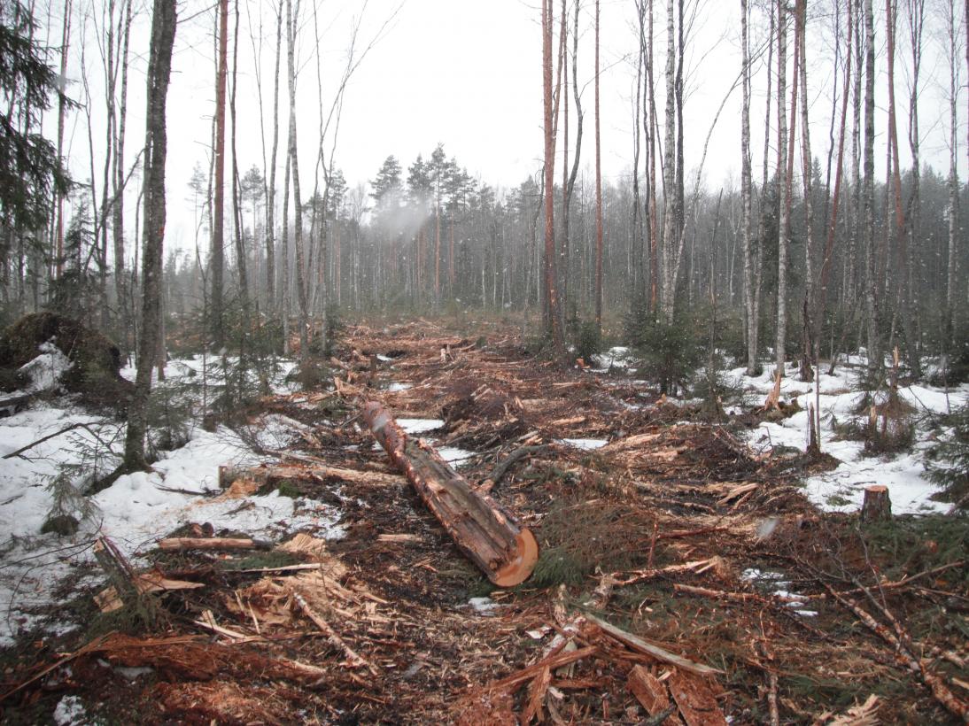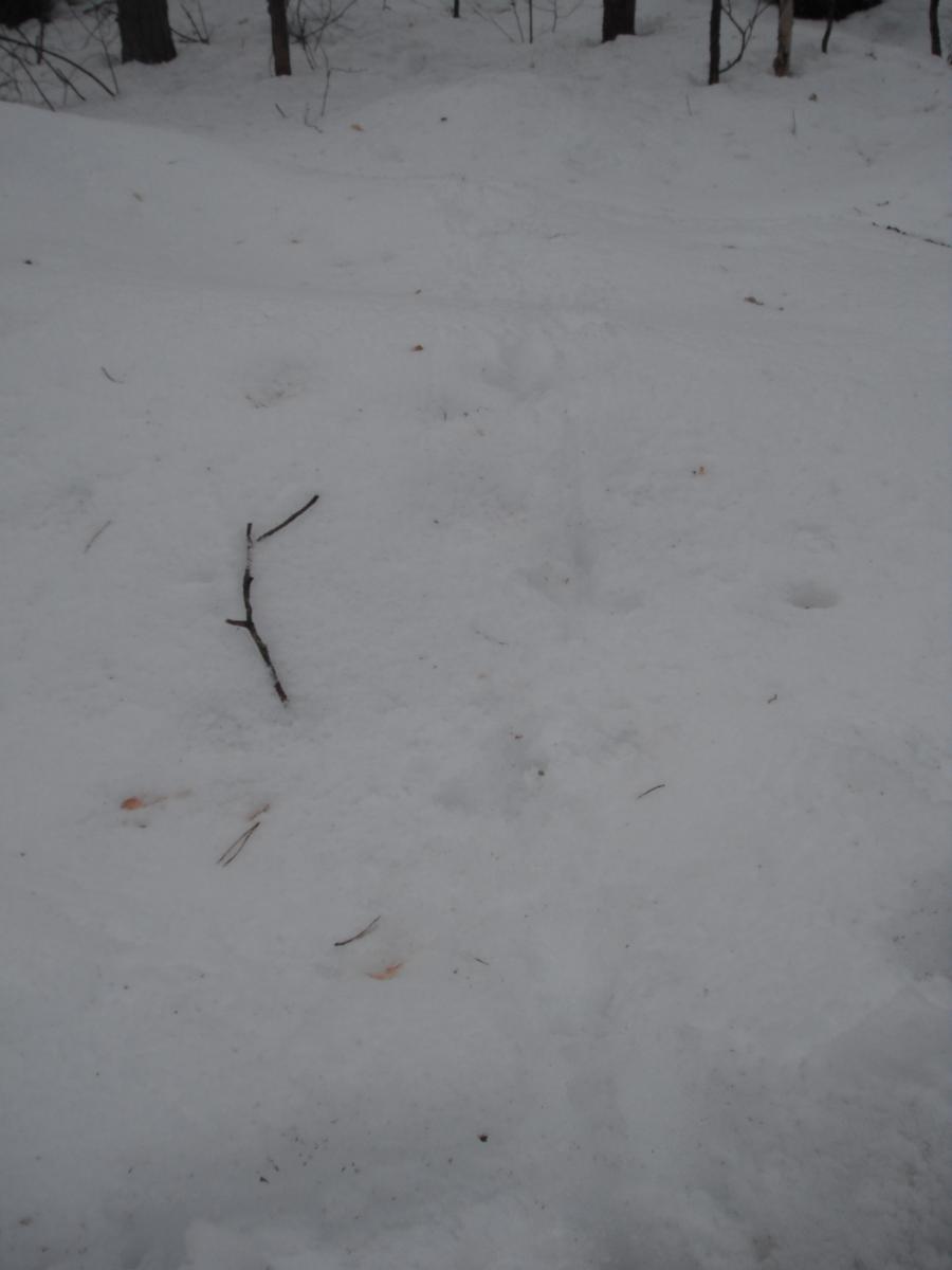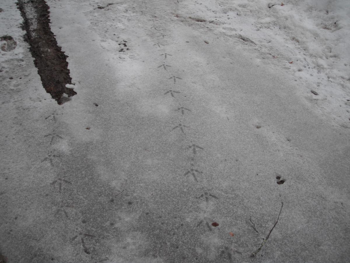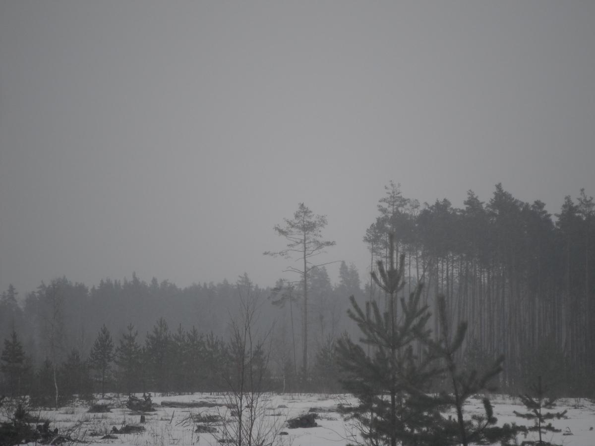 Не успели до нее доехать, как увидели свежие глухариные следы. Только вышли из машины, как над головой с грохотом пронесся глухарь. Метров через сто заприметили еще одного. Потом было еще несколько вырубок и практически на каждой по 2-3 глухаря! Итог прогулки-18 глухарей, с десяток тетеревов, и свежайший заячий след. Да, еще счастья полные штаны и зуд в предвещении открытия охоты:12: Смотрите внимательно на верхушки сосен.