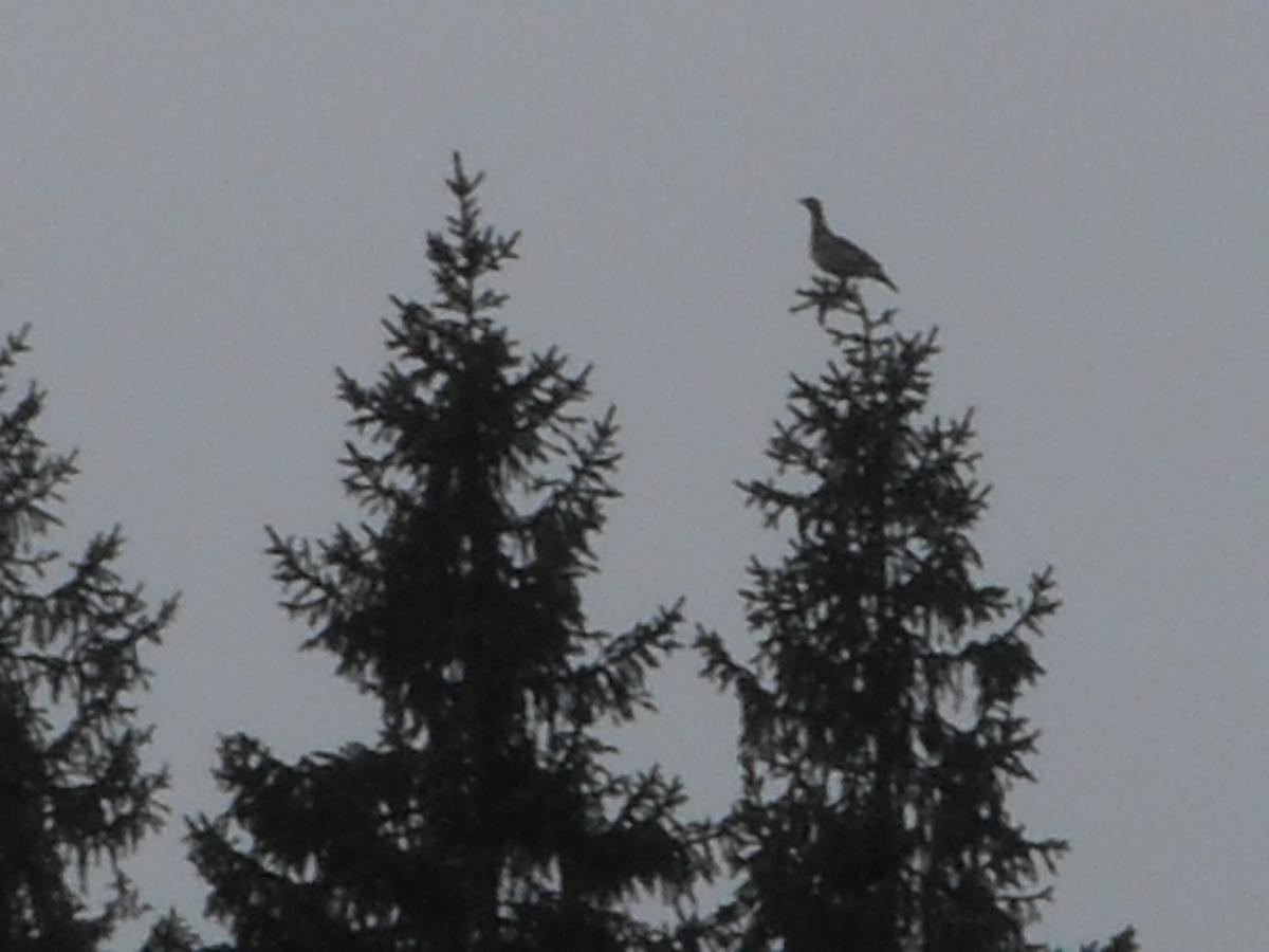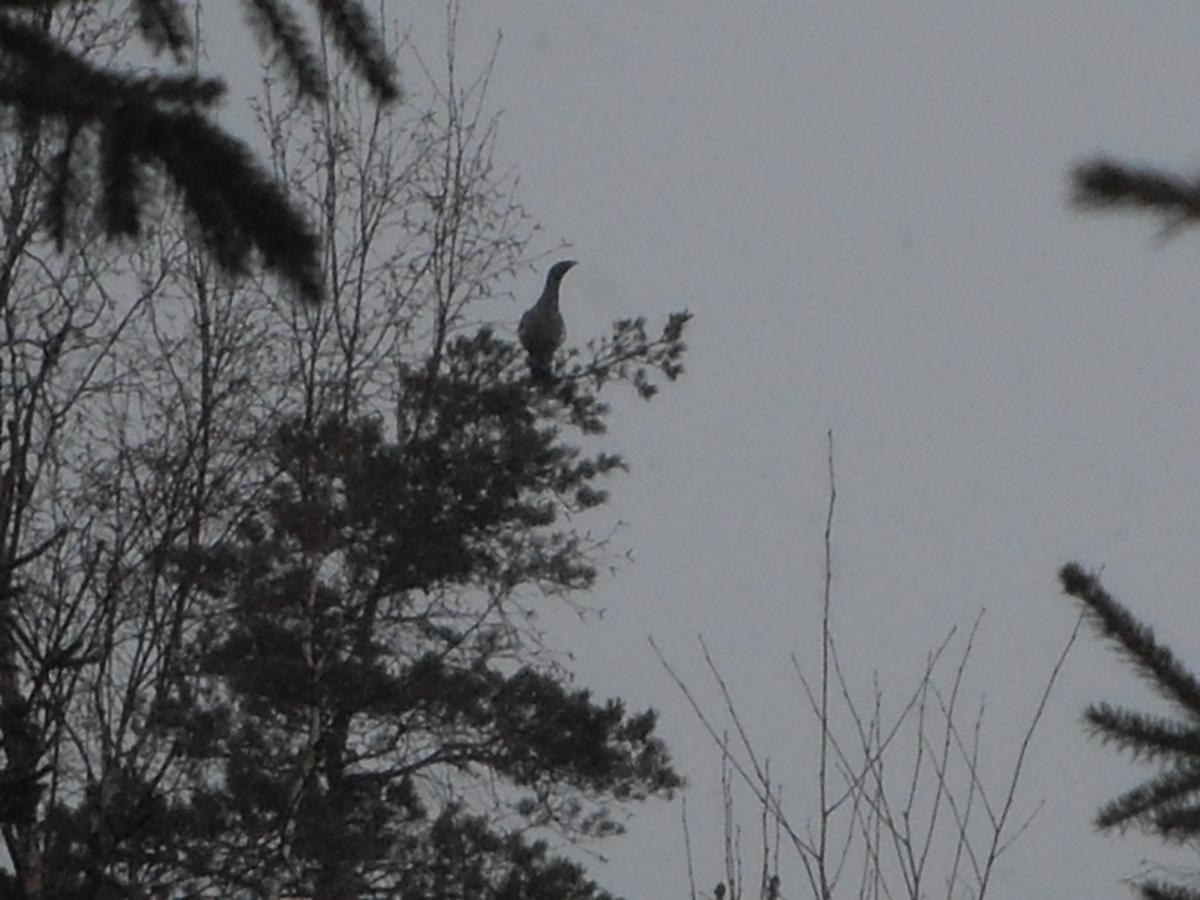 В эту субботу выехали на разведку глухаря. Неделей ранее были уже здесь, но видели только следы. А теперь воочию убедились, что глухарь здесь есть в немалом количестве и причем совсем не пуганый. Некоторые подпускали метров на 150.