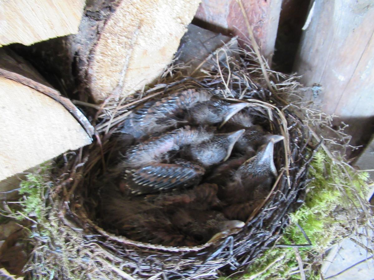 ЛО район Синявино: 25 мая птенцы скворцов, доказательства съела кошка)