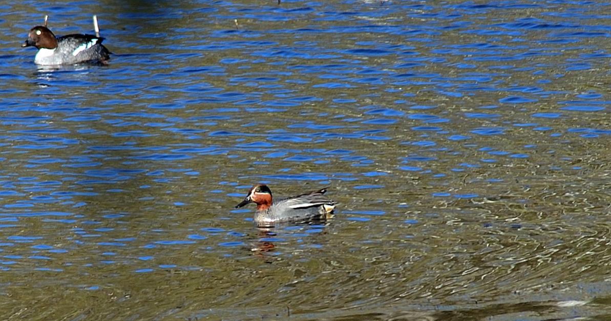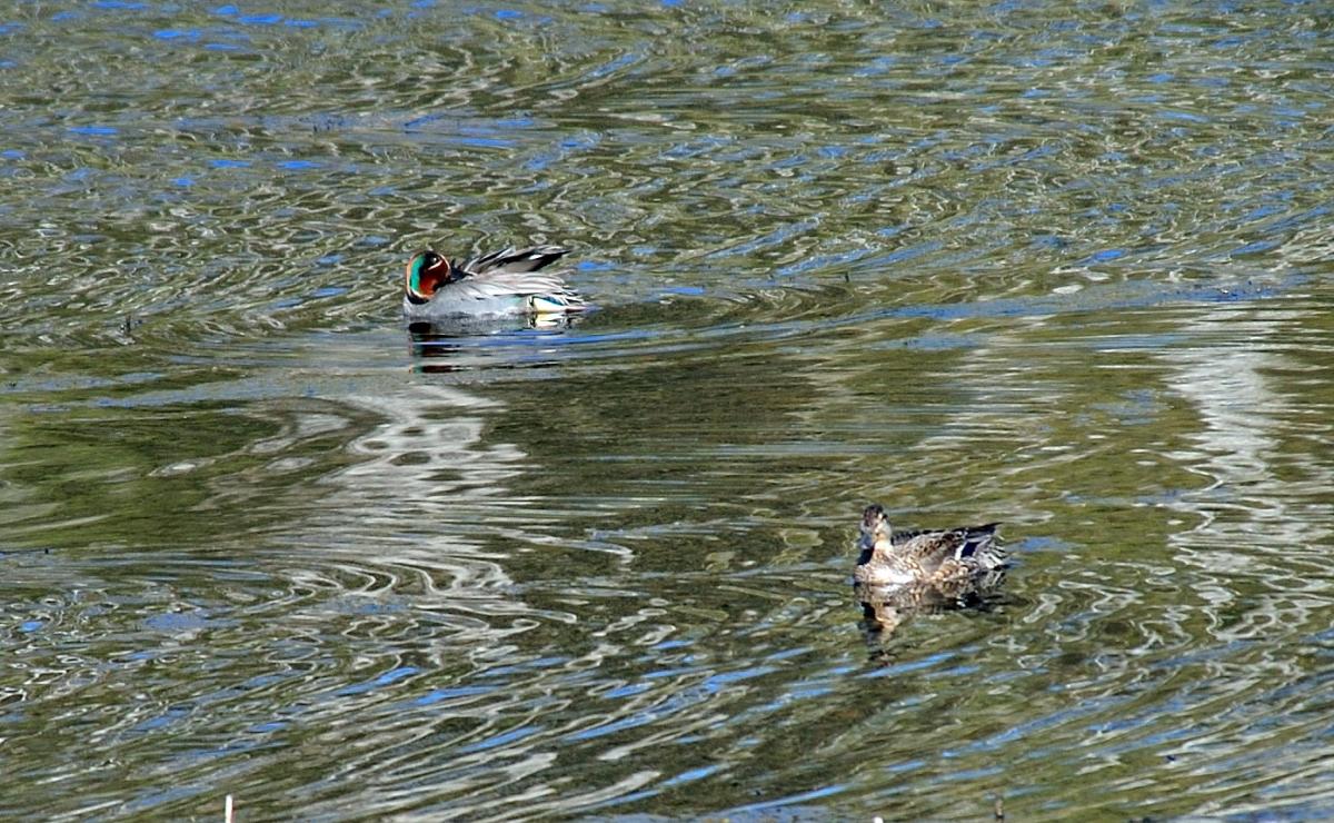 Чирок-свистунок (Anas crecca)-(common)Teal ...Самая мелкая речная утка..Длина34-38 см, вес 0,2-0,4 кг...(с) Полевой определитель гусеобразных птиц России .. Очень осторожны ..