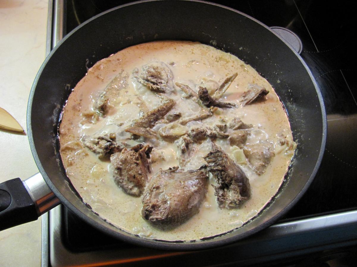 С парой валюш этой весны решил не мудрить: тщательно ощипал (без опаливания), вымочил пару суток в чистой воде (воду менял раз в 8 часов), разрезал по грудке, развернул половинки, чтобы обжаривать целиком, натер солью, ОЧЕНЬ немного посыпал молотым орехом, черным перцем, сушеным укропом. В горячей сковороде растопил ломтики сала, обжарил приготовленные тушки. Разбавил полстакана 35% сливок водой 1:1, очистил одну среднюю луковицу, мелко порезал и добавил в сливки с водой, все тщательно перемешал до однородной массы. Разрезал обжаренные тушки на "порции", сложил плотно в сковородку со шкварками, залил сливками с луком, закрыл крышкой и на час тушить на медленном огне. Пару раз за время тушения переворачивал куски. Получилось вполне пристойно