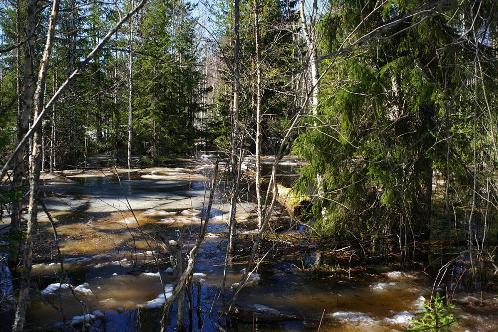 Однако, после заброски мы убедились в том, что снега в лесу ещё предостаточно, что сильно затрудняло поход к Нежданному, да и на самом току нам было бы весьма нелегко.