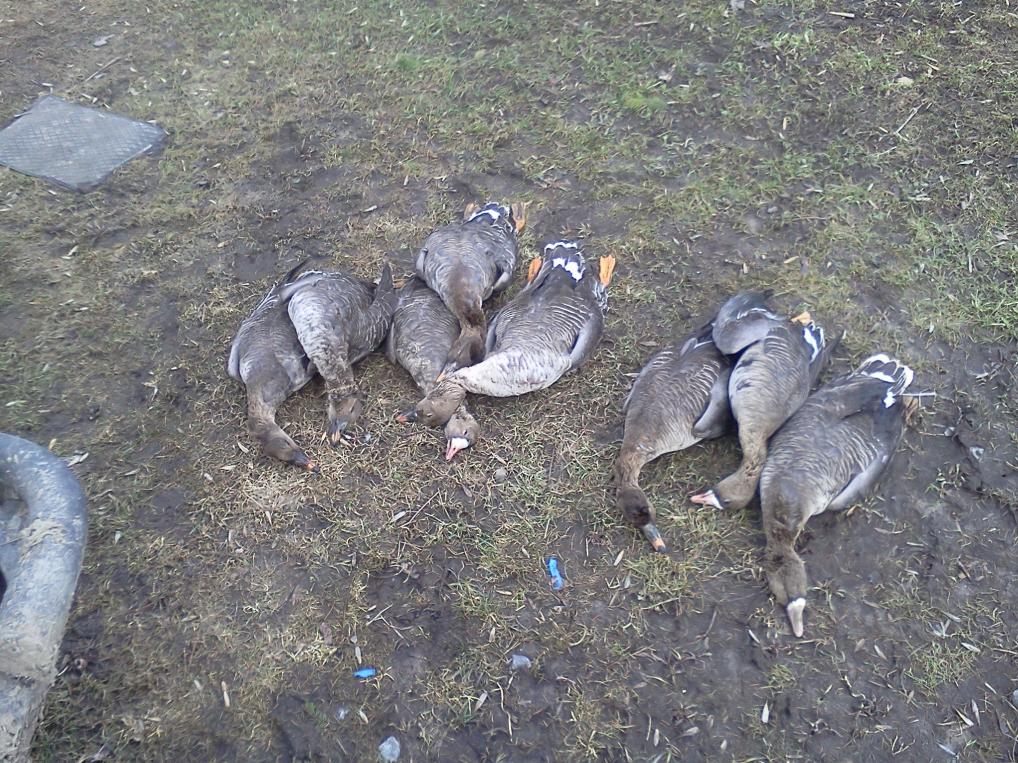 Никак все не закончить, но хочется написать обо всем. Часиков в 5 вечера сажусь в шалашик. Через час появляется хорошая стая и начинаю манить. Один круг, другой, на третьем расстояние около50 метро и стая что-то заметив начинает разворачиваться ,поднимаюсь и жму на курок, 4 выстрела и вижу как вываливается 3 гуся, перевожу еще на одного и тот падает кувырком. С криками мать твою неужели выстрадал, мчусь подбирать добычу. Итог за вечер 4 гуся и 2 селезня. За следующий день добыл еще 4 гусей и был счастлив .