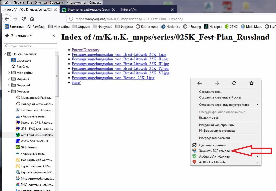 Просто там нужно открывать каждую карту и сохранять или через Download Master сразу закачивать все карты со страницы.