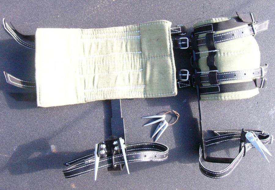 На счет капроновых ремней с затягивающимися пряжками я полностью согласен с политикой фирмы "Молот" у меня было такое, что пряжка на капроновом ремне поползла и гаффа на одной ноге просто свалилась. Благо было не высоко. В последствии поменял пряжки, но такая вероятность осталась, посему пряжки я язычками на кожаных ремнях рулят.