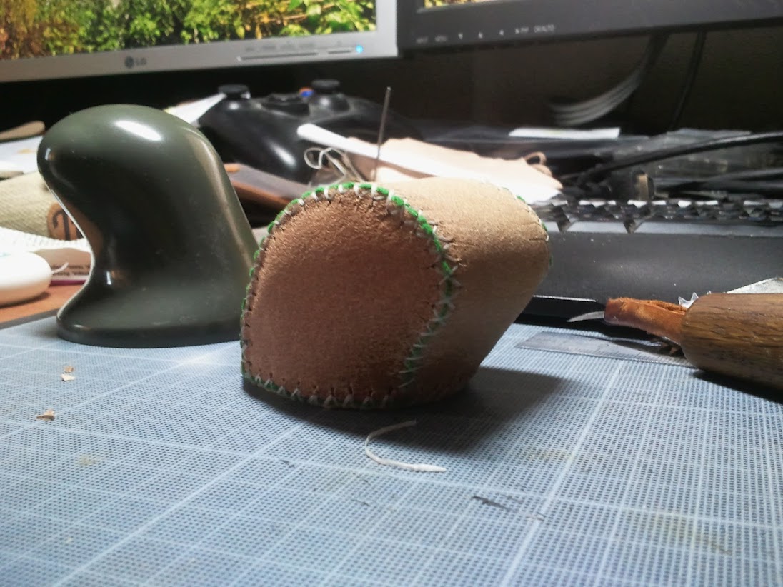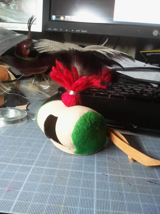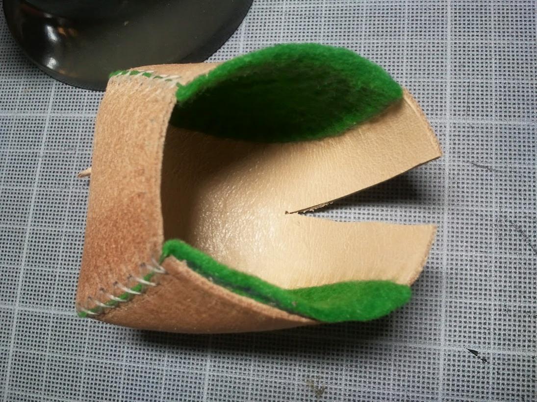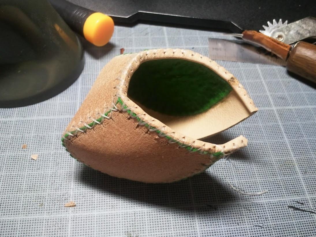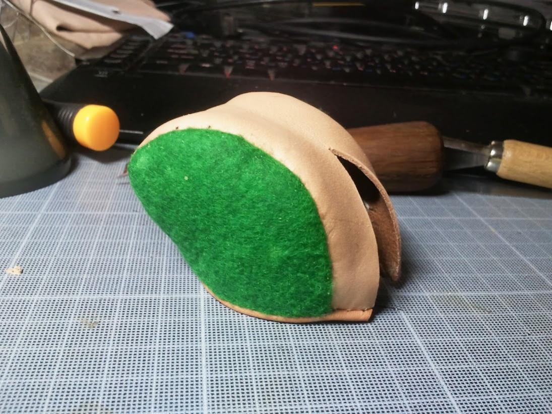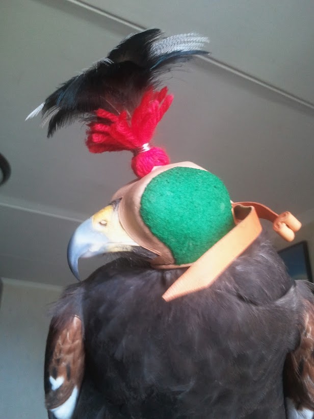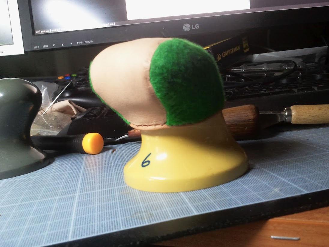 Голландский клобучок шьется из трех частей - центральная маска и две глазные панели. Он обычно формуется на болванке, за счет чего достигается идеальное соответствие голове птицы. Изготовление болванки - отдельное искусство. Благодоря этому жесткий голландский клобучок - один из наиболее сложных и точных в изготовлении.
