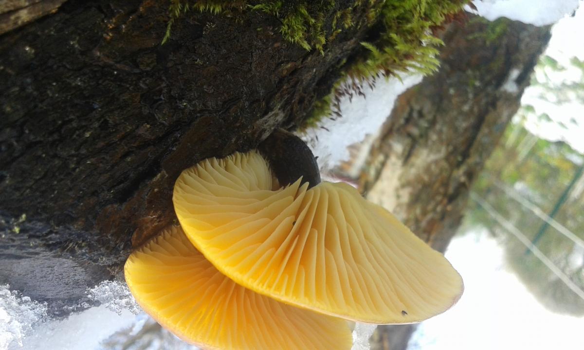 Вчера еще ни чего не было, а сегодня вместе с первым снегом вылезли на старой яблоне. Что за грибы?