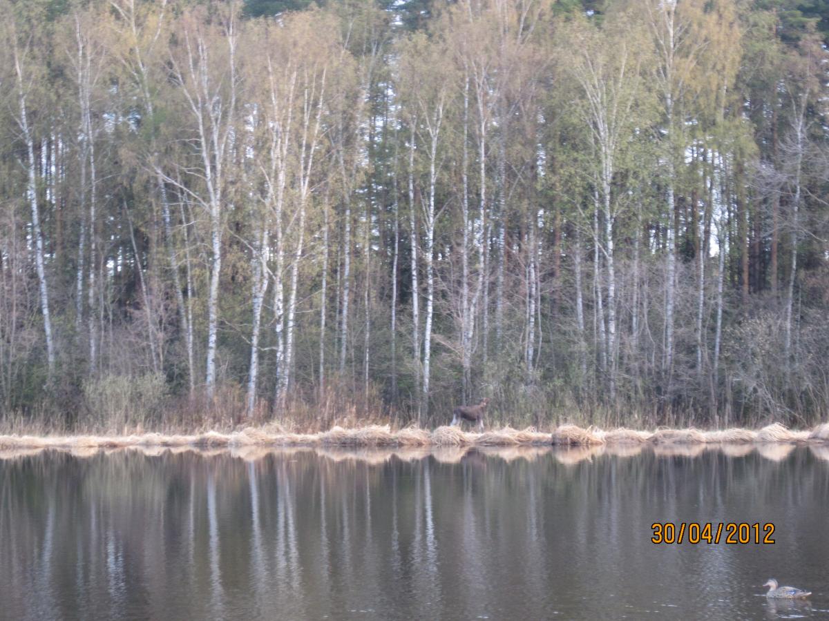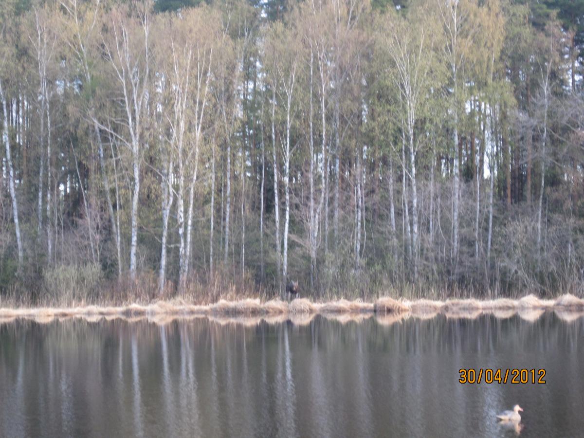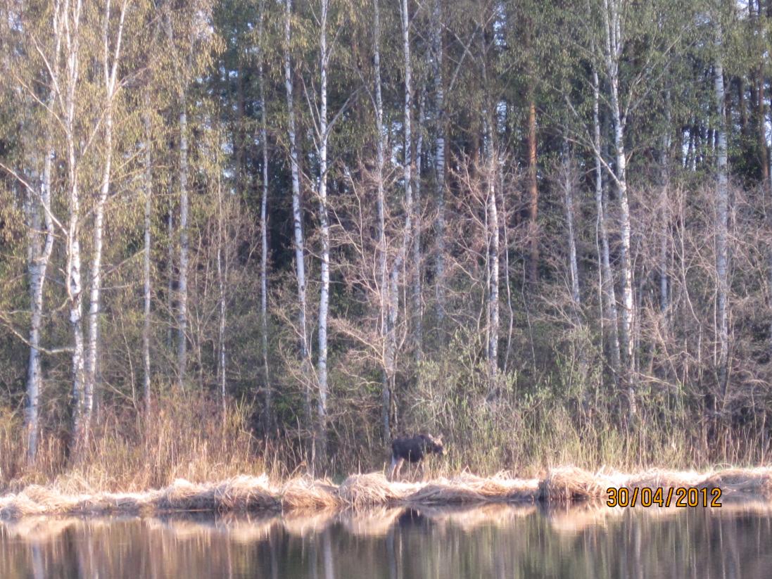 :agg: :yelclap: Это фото, а есть и видеоролик, который снял на фотоаппарат. Так вот, за этим кормящимся лосиком наблюдал минут 7-8, до того момента пока он не начал двигаться по кромке тростника. Пришлось пару-тройку раз крикнуть. Интересно было наблюдать за его реакцией. Лось долго не мог понять откуда доносится крик, т.к. голос отражался от леса и сбивал его с толку.