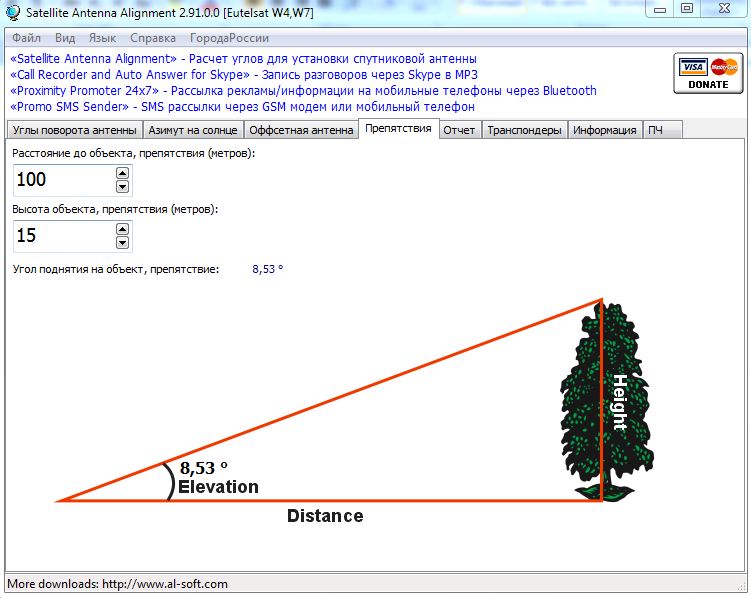 Спутник для широты Питера "висит" примерно в 20 градусах над горизонтом, точнее уже не помню, и если его от антенны загораживают деревья, естественно, приёма не будет. Надо делать "аккуратный пропил в горах".