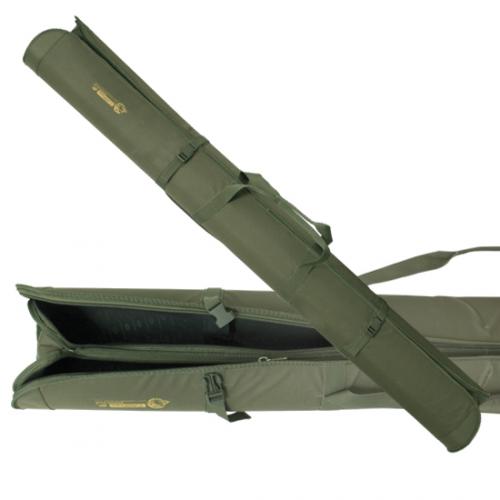 2-х секционный с фиксированным креплением удилищ, рассчитан на 8 спиннингов без катушек, подсак, стойки для удочек и мелкие аксессуары. Длинна — 190см, диаметр примерно 20см