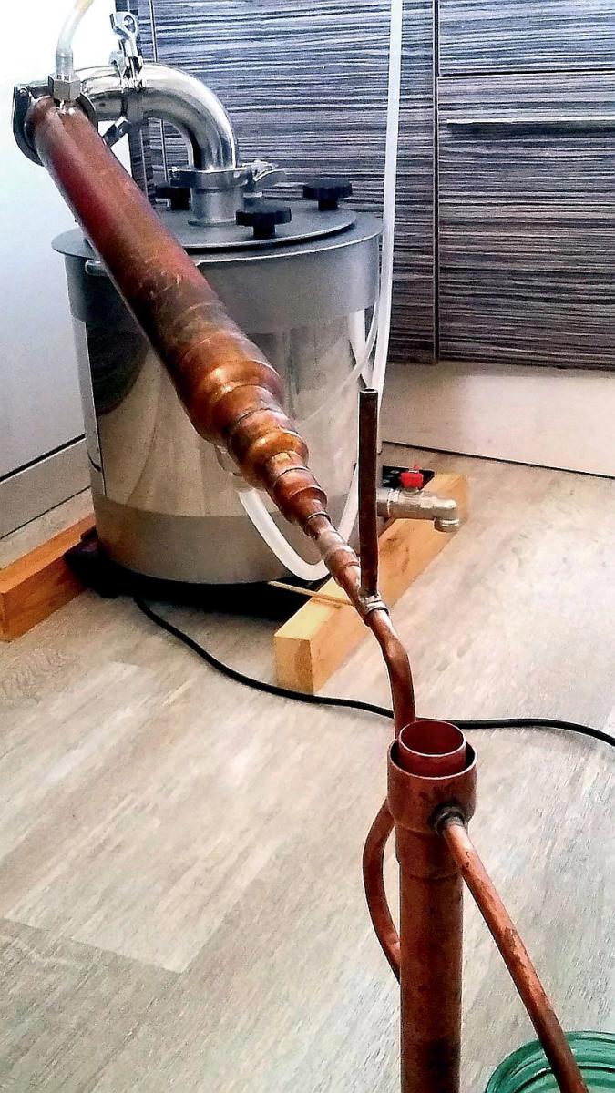 Перегонка браги осуществлялась на медном прямоточнике собственного изготовления.