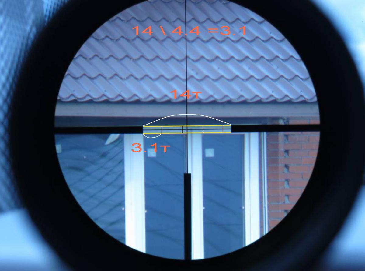 Я считаю в тысячных. 140 см = 14 тыс. Кирпич на стене 25 см , в тысячных по сетке 3,1. Формула. Д =(наст. раз. цели х 1000) \ разм. в цели в тыс. по сетке . (0.25 х100) \3.1 = 80,6 метров. О, в перыдущем посте ноль с запятой опустил.)))) На мой взгляд стена стоит под углом, так что может быть и ближе. Как то так