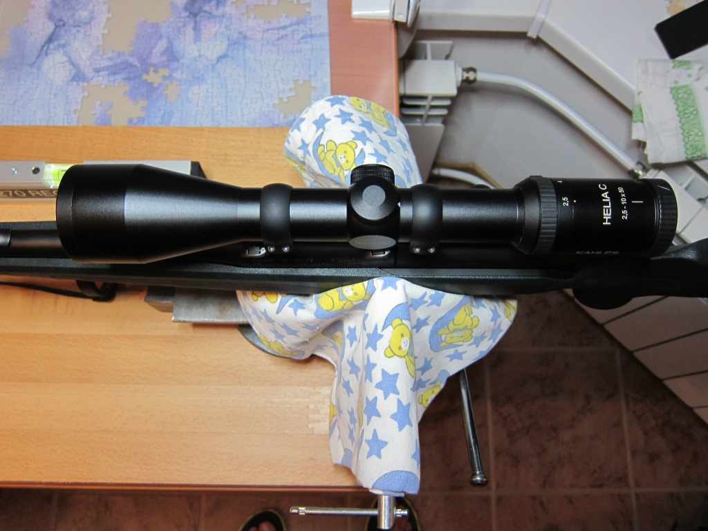 После этого аккуратно снял крон, закрепил нижнюю часть колец, установил крон, вложил прицел, по веритикальной поверхности на левом боковом срезе прицела (в месте регулировок) выставил горизонт на прицеле.