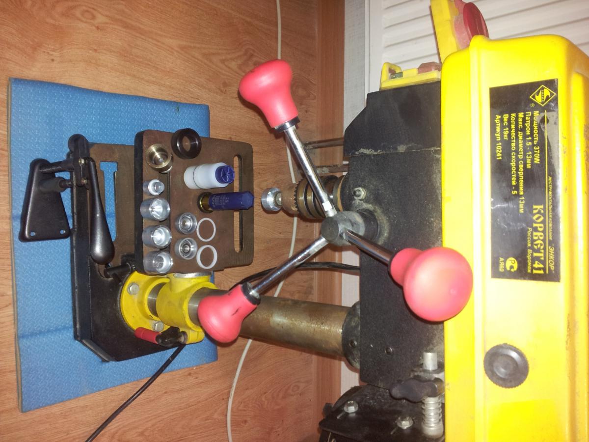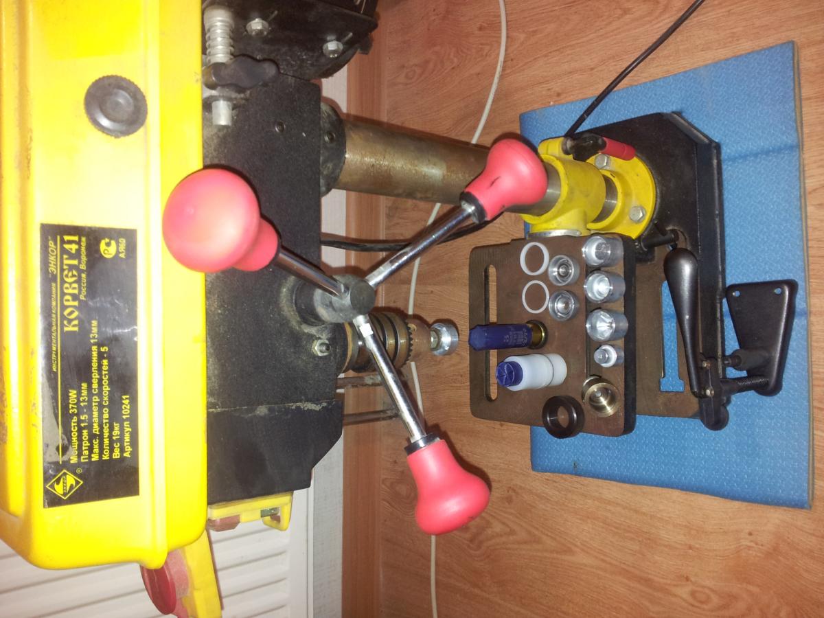 Для пороха сделал два черпачка из фитинга(заглушка) для пайки медных труб D=18мм и 15 мм. 18 мм подходит для навески 2,1(примерно) гр Сокола. Хотелось еще собрать под завальцовку, но столкнулся с проблемой, что у матрицы Вэлконт ( из комплекта для Звезды) резьба М8, а в настольной закрутке М6. Поэтому отложил это до решения проблемы.