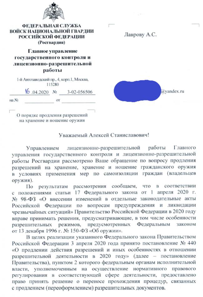 Обращение писал в Росгвардию давно, когда только начиналось. Сегодня пришел ответ.