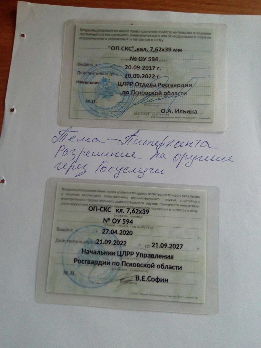 Разрешение на приобретение/хранение оружия через Госуслуги