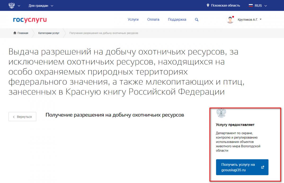 Захожу на них, набираю - выдача разрешений на добычу охотничьих ресурсов
