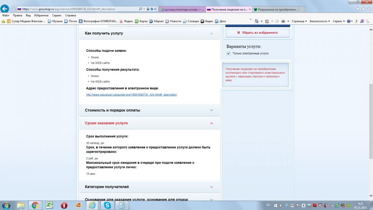 26 октября подал заявление теперь уже на разрешение. Пока "Принято ведомством "АИПС Оружие-МВД".