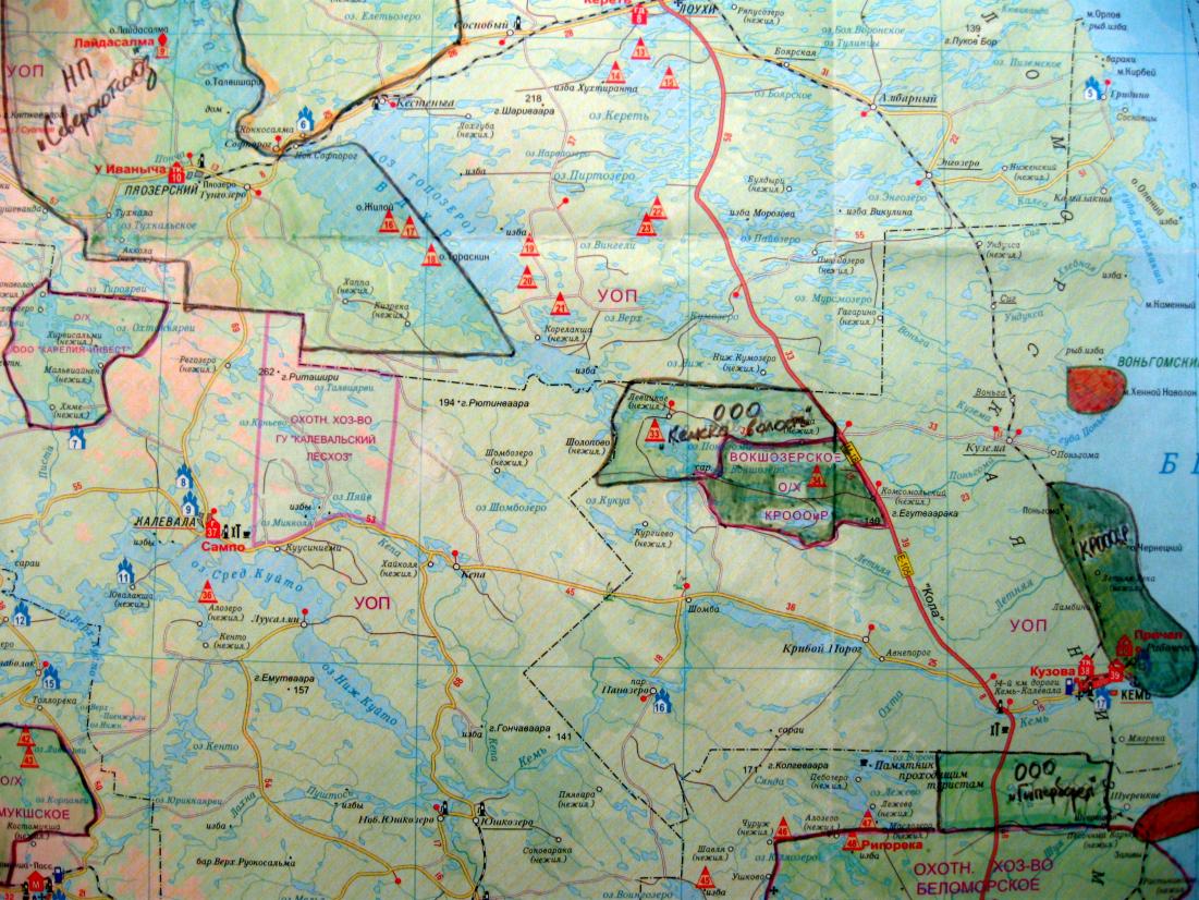 Карты сверху старые. Сейчас вместо Карел-сафари УОП. Дальше к Вяртсиля - Черные камни + РООИР. По Черным камням могу подсказать телефон егеря, он в Хелюля.