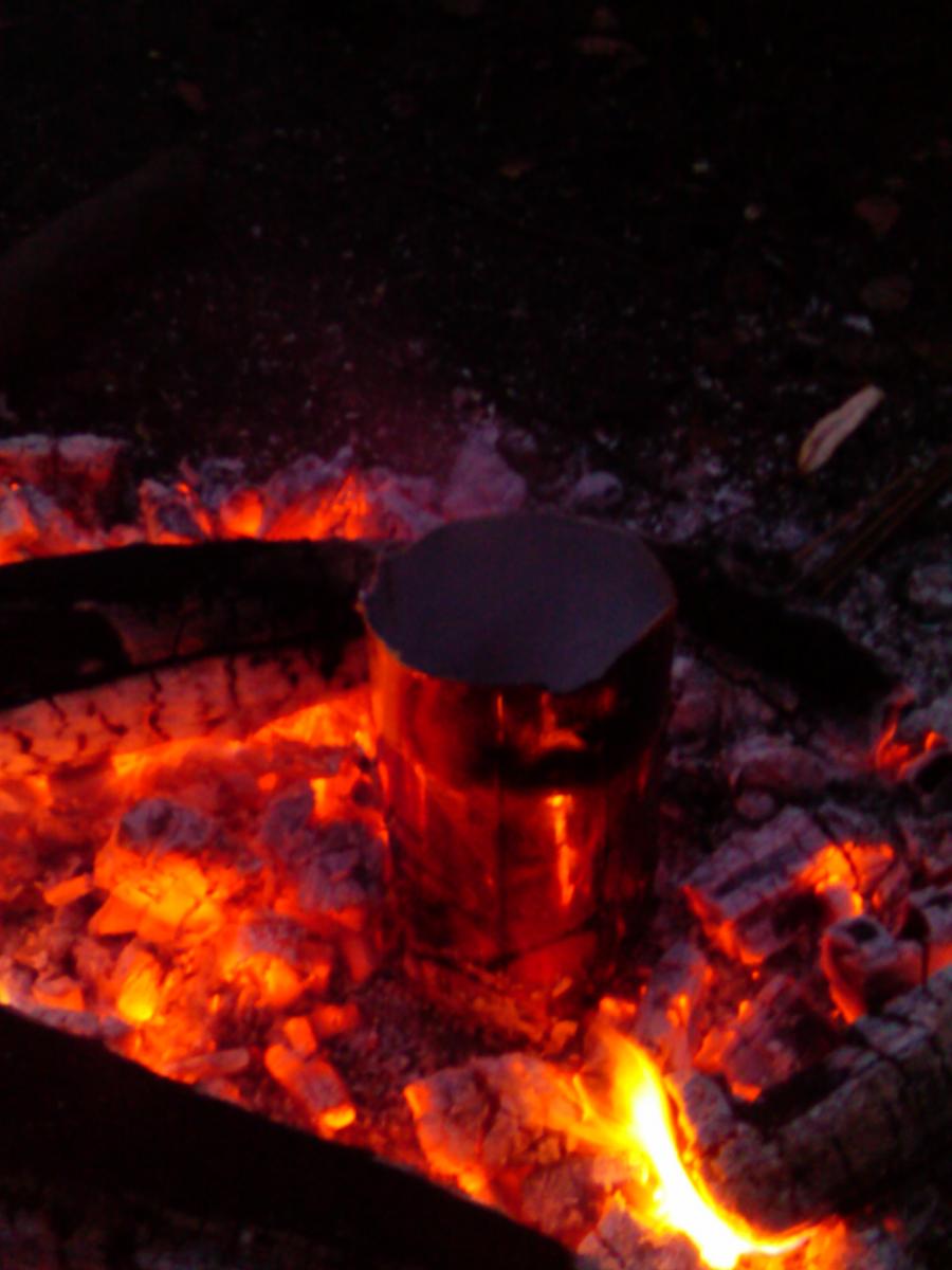 В эти выходные решил сделать "авто тушилку" для костра. Налил в бумажный стакан воды и поставил на "свечу". Через некоторое время, стакан где небыло воды изменл форму, вода начала кипеть. Автотушилка не получилась, но открытие было сдлелано:)