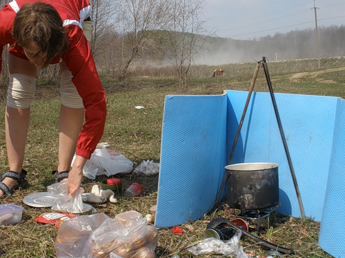 Ну а те из нас кто вообще не хочет заморачиваться с экраном (я имею в виду туристов), просто ставят вокруг горелки свернутую в кольцо пенку и все.