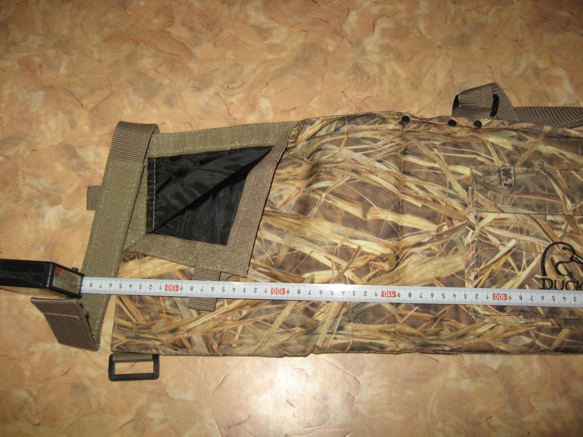 Длина чехла позиционируется как 1250 мм. В развернутом виде 1350 мм. Моя Мурка со стволом 710 мм входит без проблем.
