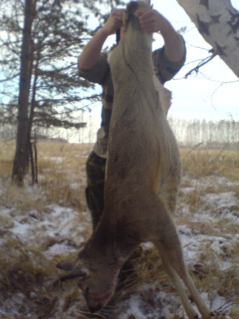 Ждал поросят с лева по курсу и, соответственно, положение корпуса, а приняв решение забрать печень, почки и сердце у косули, перестроился и выстрелил в движении вниз по наклонной- много опустил и вскрыл брюшину. Ждал около получаса и пошёл добирать..