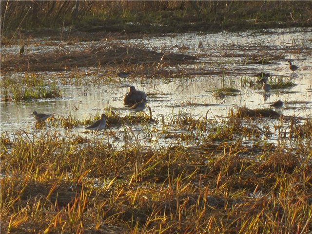 Вижу шестерку с горизонта, дую в БГ, подворачивают, несколько кряков фальком, и за полторы сотни метров замолкаю. Действует, гуси идут на чучела, дрожь во всем теле, боюсь моргнуть, дыханье просто закончилось. Все, пора, выстрел гусик вываливается и метрах в 20 падает, бит не чисто, вторым прекращаю мучения белолобого красавца. Дальше затишье почти до девяти часов. Сидел фоткал куличков возле чучалок: