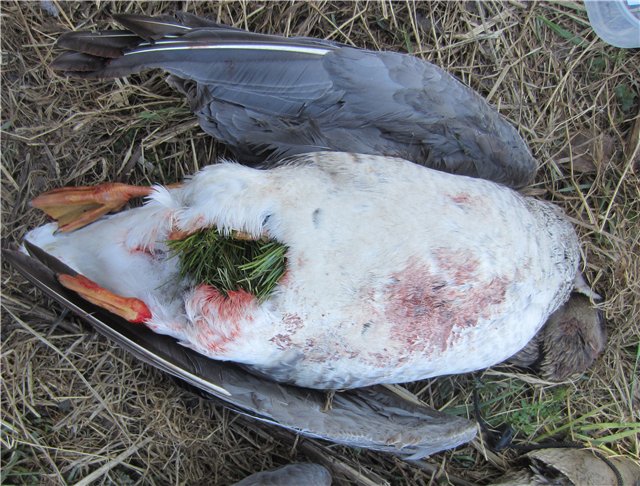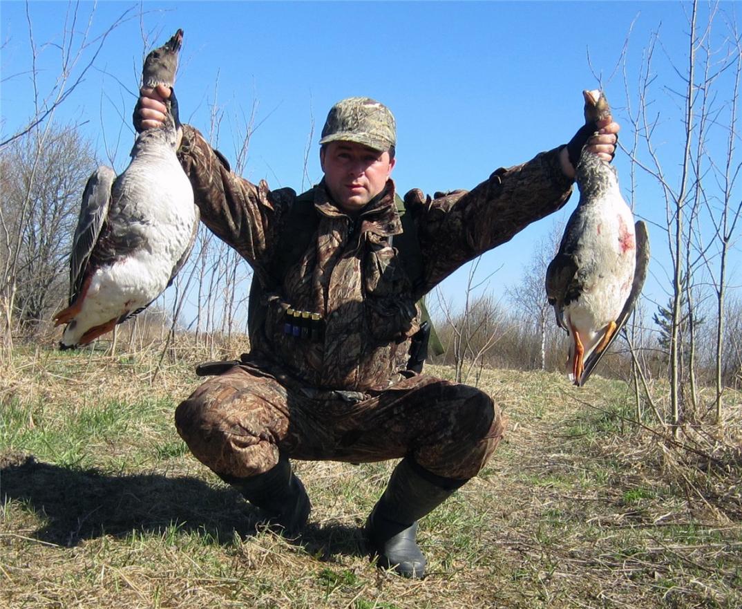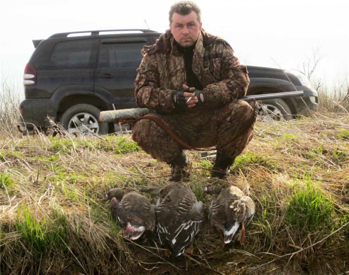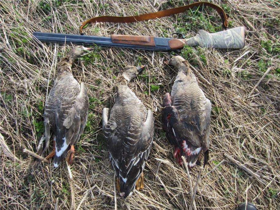 , охотимся вместе, они только на вечер приехали. За вечер был один налет одиночки, залп из трех местных стволов поставил в жизни белолобика свинцовую точку.