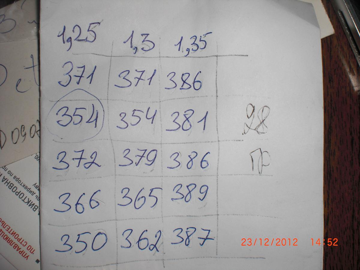 Серия с навеской 1,25 ввиду низкой начальной скорости заряда и, как следствие, плохой резкости, нами изначально "всерьез" не рассматривалась. (была в свое время сделана только для получения нижней точки графика скоростей) Скорость 350 м/сек зафиксирована на пятом замере в этой серии. Согласен, что разброс между минимальным и максимальным показаниями (350 и 372) более 20 м/сек великоват, и мы специально начали отстрел с "малозначимой" навески, чтобы набить руку и пристреляться.