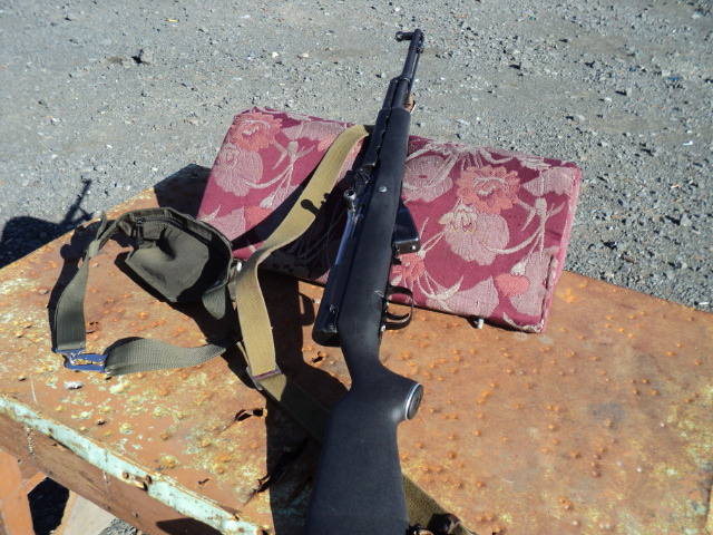 Сегодня специально поехал пострелять, степлером прибил кусок обоев, прикрепил лист А4 покрашенный в чёрный цвет, и в низу листа прикрутил саморезом спичечный коробок. Расстояние 115-116метров, не стал стол перетаскивать ближе. Целик на единичке, стреляю 6 раз, иду смотреть. Пули пришли в круг 10см и ниже нижнего края А4 тоже сантиметров на 10-11. Ставлю планку на 2, стреляю 4 раза также под обрез листа А4, иду смотреть. Одно попадание в коробок и три пули пошли чуть выше и правее. Фотография получилась засвеченная, но всё равно вторую серию из 4 выстрелов видно. Мы взрослые люди, может быть не будем верить в сказки про СКС?