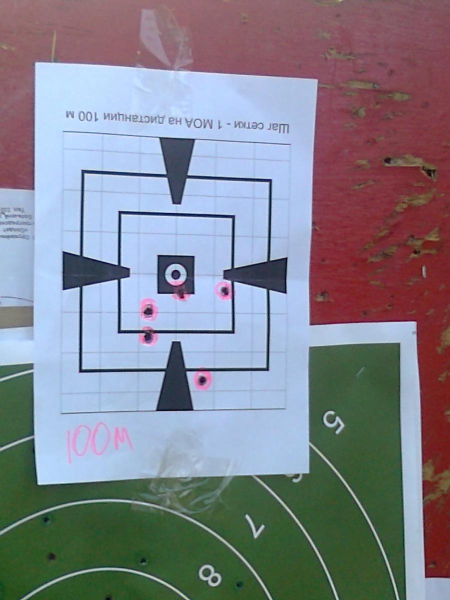 Так не было такой задачи удивить хорошей кучностью, была задача подтвердить или опровергнуть возможности СКС попасть в спичечный коробок с открытого прицела на 100 метров три из трёх, что и подтверждается выкладкой мишеней.