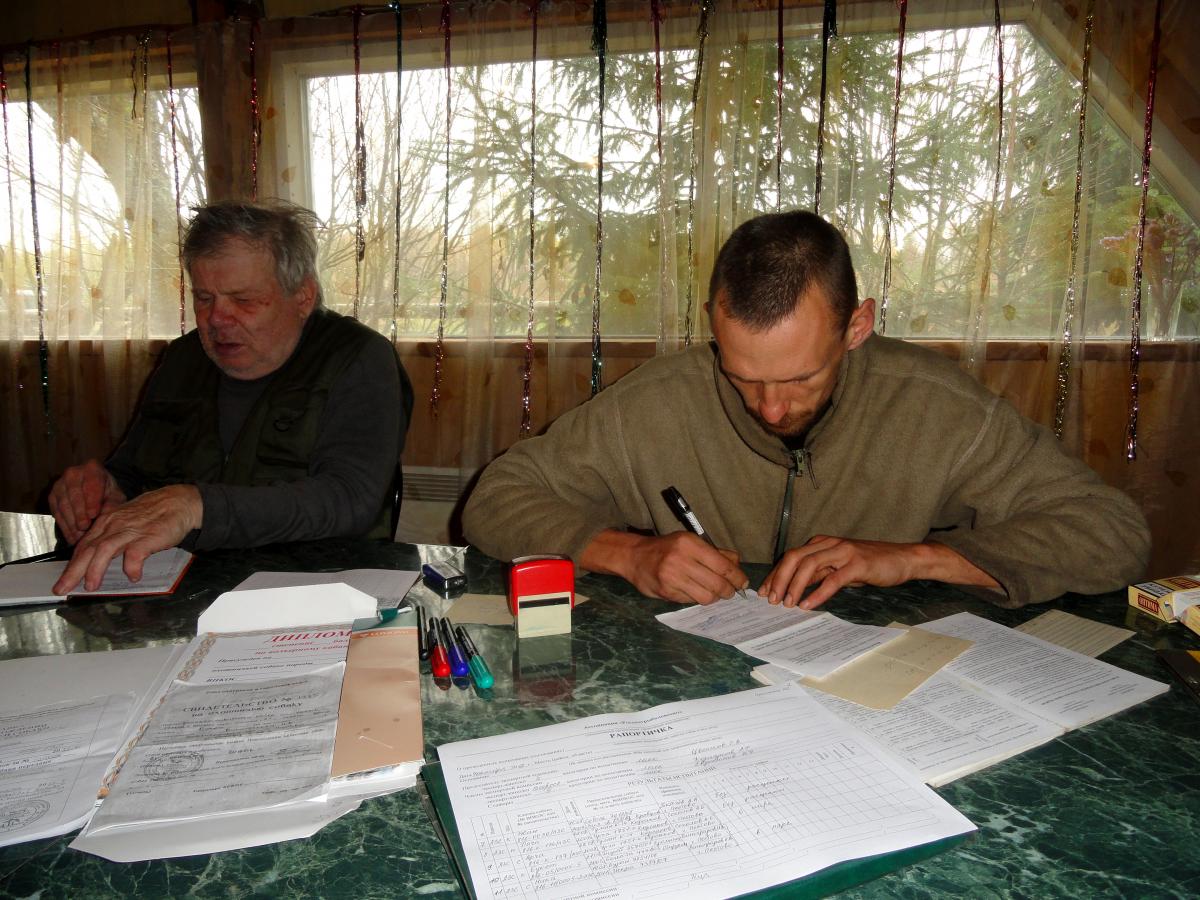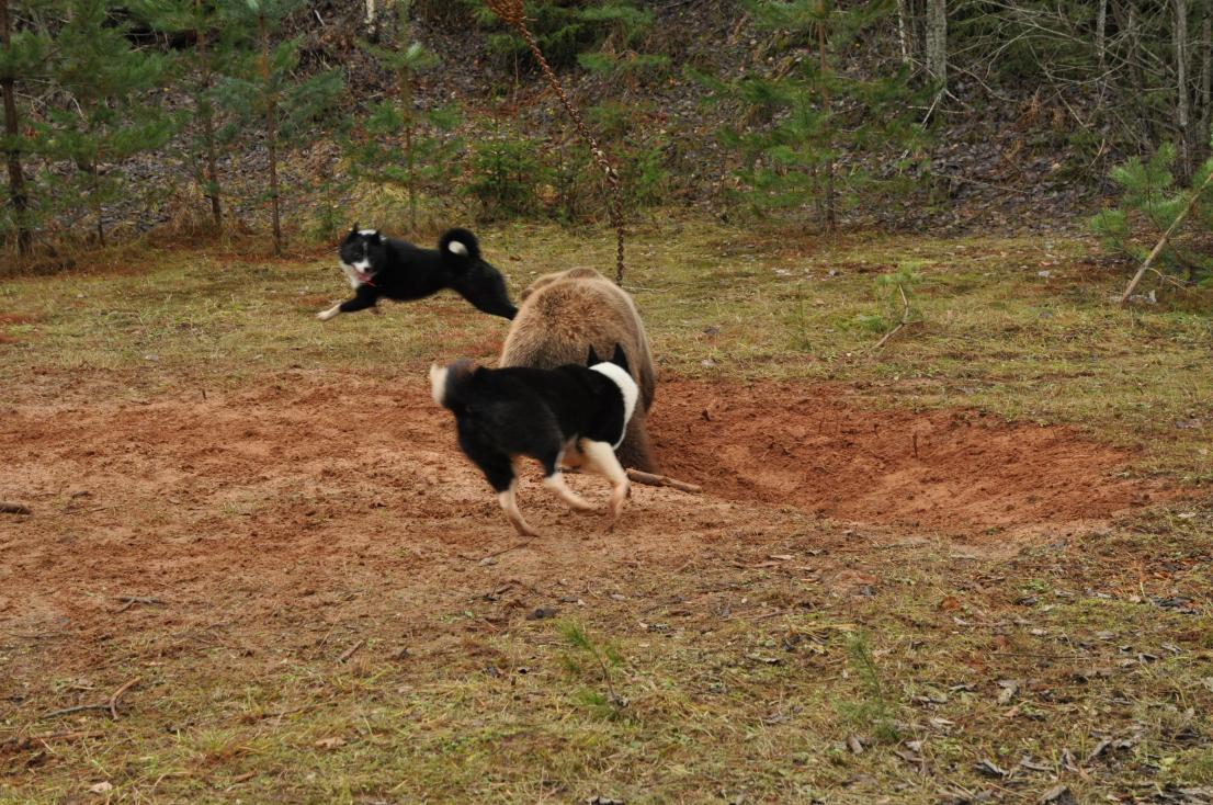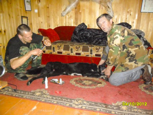 "Ну вот и мы приехали! Два дня не прошли даром! Спасибо работникам станции за тёплый приём и хорошие условия для проведения испытаний, экспертам спасибо за хорошую работу, а участникам испытаний(с кем довелось пообщаться) за хорошую компанию! В общем, два дня и без малого 900 км. от моторесурса УАЗика не были потрачены даром. Испытания прошли хорошо,со слов экспертов всего участвовало порядка 60 номеров (за все дни). Приехали мы в субботу, но поздно-работы чужих собак посмотреть не успели, но сегодня мы опять же были последними, поэтому посмотрели всех.Радует, что бестолковых собак мы не увидели. Работали все, хотя и не все срабатывали на дипломы. Медведица не сильно крупная, и не сильно активная, но нашим собакам(когда сегодня они работали в паре) расшевелить и закрутить её удалось. Причём хорошо так закрутить.Классически. Я думаю, всем кто видел - понравилось!