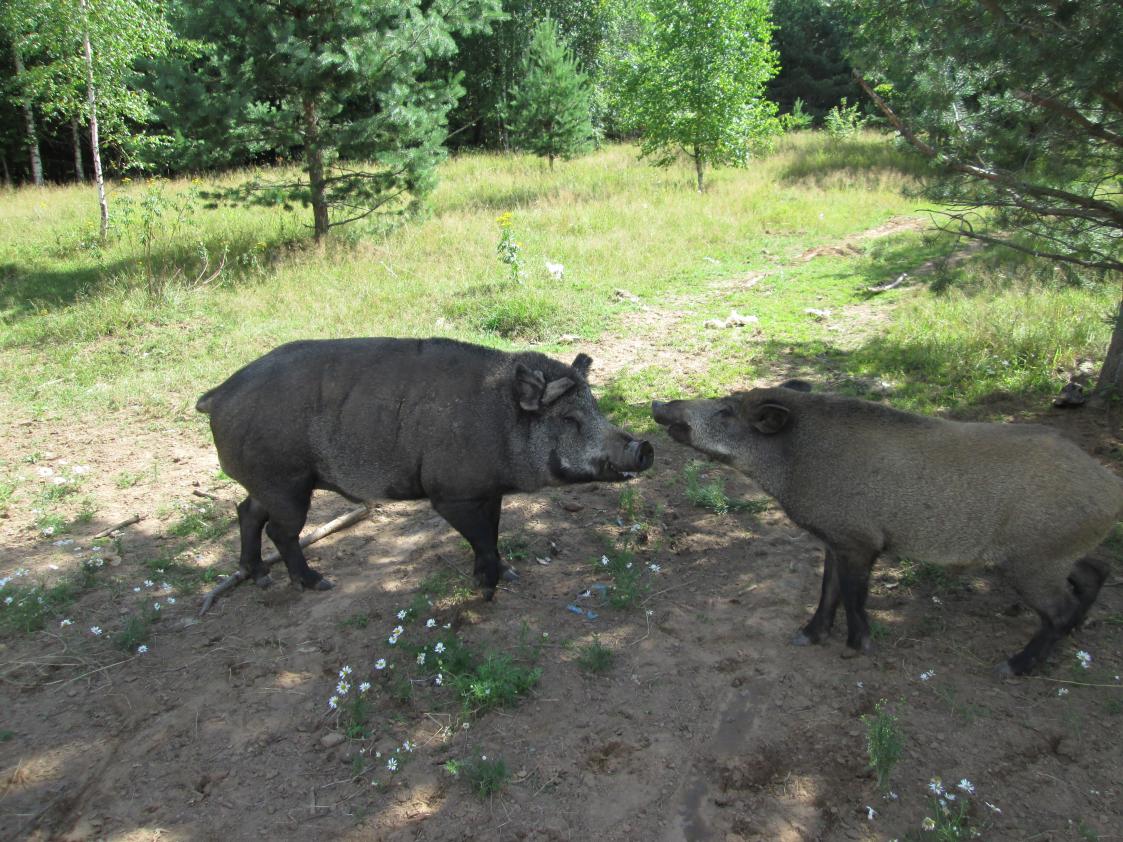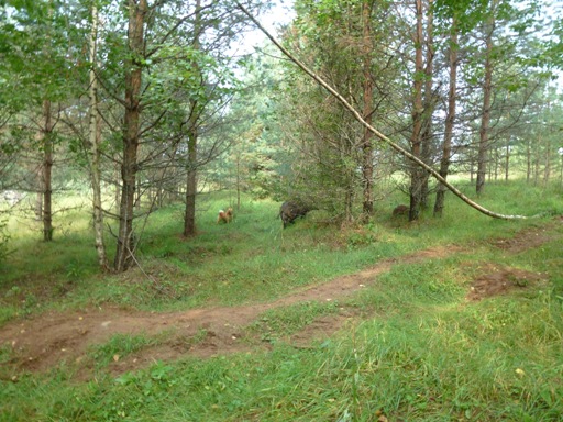 На кабана мы не выставлялись-времени у нас было мало, сами вымокли и собаки выполнили "программу" и устали, так что жадничать мы не стали. Кабаны(свинья и секач) как обычно сидели в болоте, мало кому удавалось их оттуда сковырнуть, но сегодня пара собак на диплом-таки сработала. Кабанцы-агрессивные, особенно секач. На испытаниях была распорота одна собака(довольно серьёзно) а у второй кабан(по совместительству еще и дантист