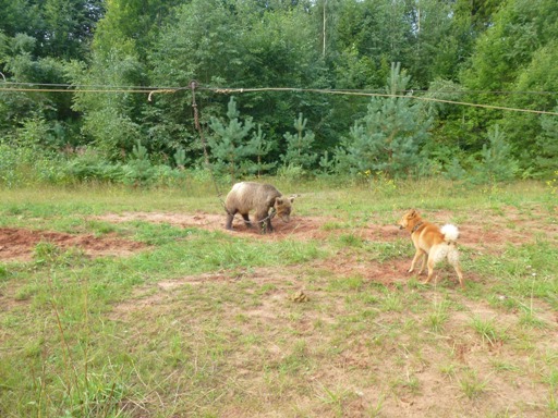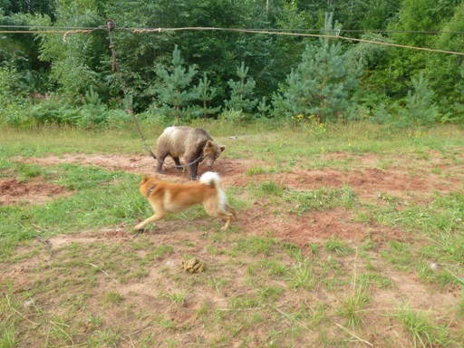 ) вырвал клык. Никогда не видел собачьего клыка, а вчера посмотрел. Кобель видимо слишком плотно работал и не смог среагировать на удар кабана-в итоге тот ему вырвал клык. Испытания проходили чётко, никто(в отличии от того же Питера) не мешал собакам работать, не отвлекал. Отсюда и неплохие результаты. Наши собачки получили свои заслуженные дипломы по медведю. Молодая сучёнка взяла диплом 3ст. при 68 баллах , а потом еще и со старшим братаном в паре диплом 3ст. при 65 баллах. Попозже постараюсь заслать видео с куском работы собак. Вот такой вот несколько сумбурный отчёт! Жаль, что кроме нас, никого из скобарей не было."