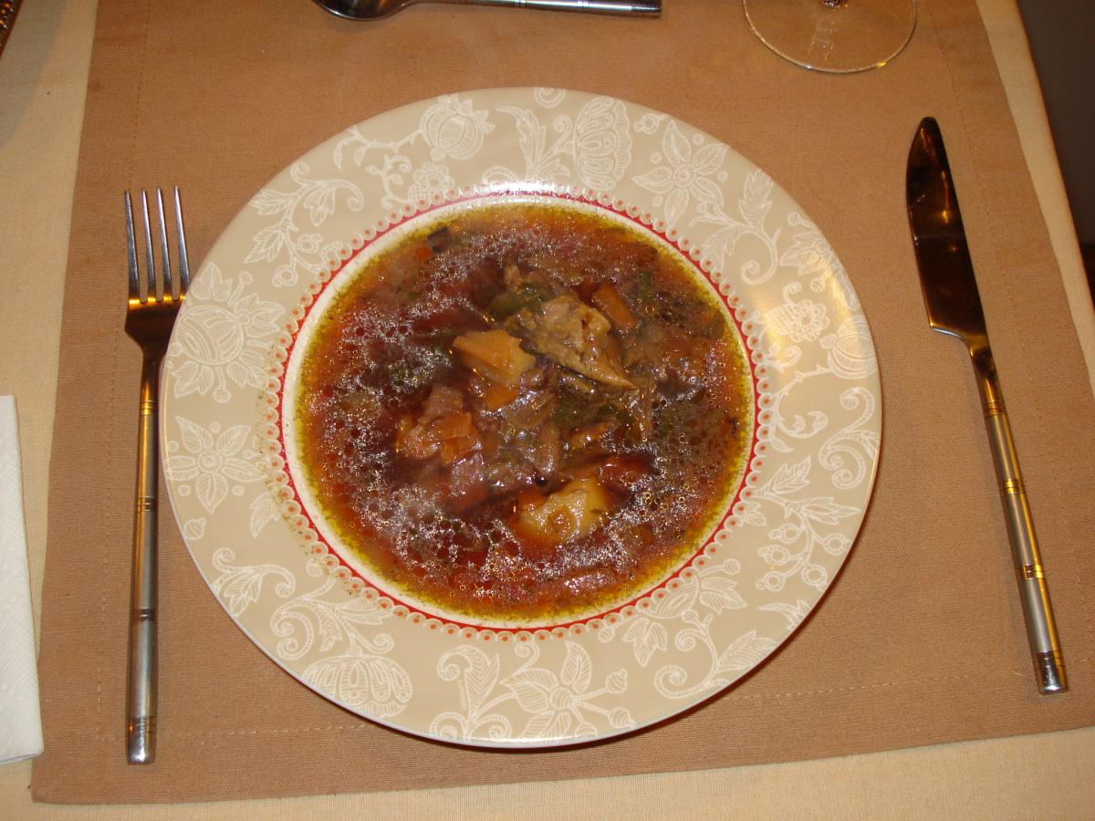 Суп с перловой крупой и паштет из печени утки, раз, на первое: