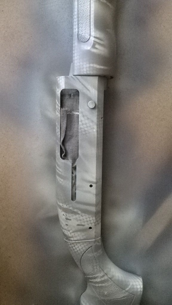 Решил перекрасить своего "Гламурного" лося в приличные цвета. Ну и вот что получилось. Ложа стала похожа на композитную , причем в этот раз я использовал фактурную краску, благодаря чему поверхность получилась шероховатой, что очень удобно при использовании.