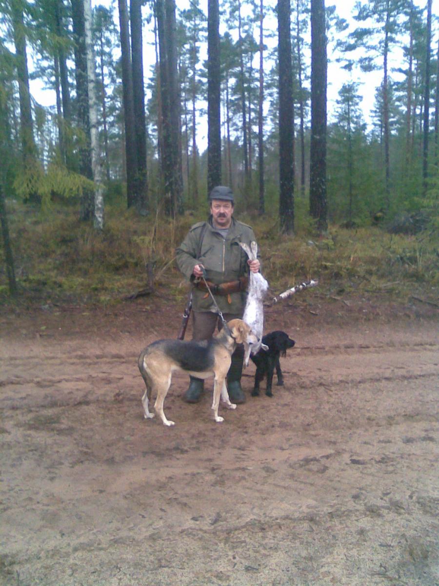 На выхи тоже побывал. По поводу все вымерло, поспорю. Заяц след давал в ночь с субботы на воскресенье, но от жировки не отскакивал. Если нашел место, где он кормился, то тут он и есть. Одного взяли в первые полчаса охоты. Правда со следующим пролетели. Нестандартный попался. Шли по следу по прямой километра два. Потом он выскочил на проезжую дорогу и мы не угадали, в какую сторону он ушел. Шанс был 50/50, но не повезло. Далее нашли еще одну жировку, подняли, гоняли часа три. Дважды его видел, но возможности для выстрела не было. Место сырое, зайка ходил промеж кочек, крутил собак прямо под их носом. Отскочит, крутанется метрах на ста и опять ляжет. Помутил, короче. Собак пришлось с гона снять уже в сумерках. Ну ничего, лазы этого косого я изучил, в следующий раз знаю где больше шанс перехватить))) Ну и немного о грустном, мой молодой эстонец впервые сработал по куньему следу. Как то надо отучать.