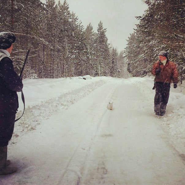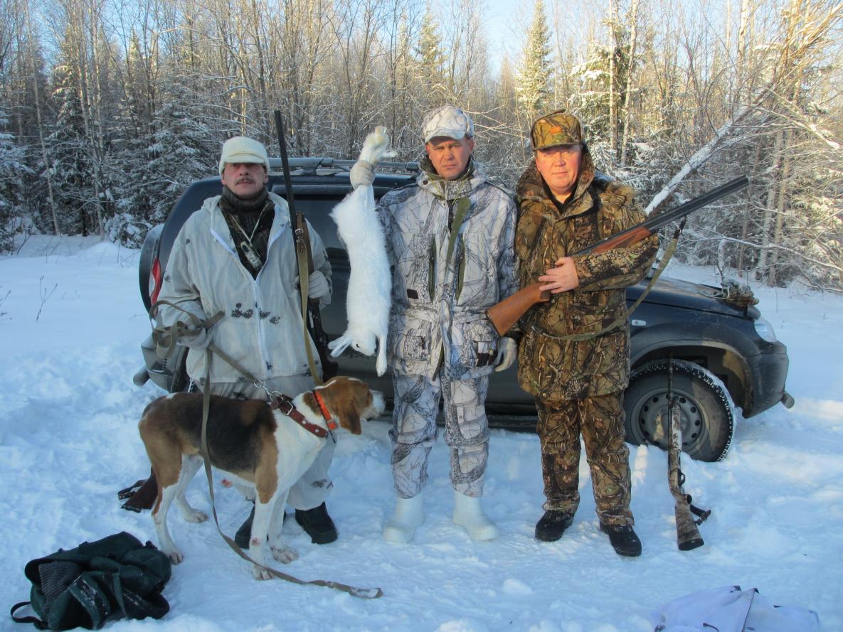 Слышу собачки угнали со слуха и стали кружить в ельнике,метрах в 600-ах.А идти то лень.А вдруг старый заяц.Что зря силы тратить.И здесь,где-то после 1.5 часов гона заяц преспокойно по чистому пересекает поляну ,выкатывает на дорогу и садится на бруствер напротив меня.Расстояние метров 150.Заяц некрупный,молодой.В стволах в нижнем 2-ка,в верхнем 1-ца.Ладно,думаю.Попробую.Прицеливаюсь.Стреляю.Заяц кубарем скатывается вниз и садится под одиноко стоящую у дороги молодую сосенку.Расстояние такое же.Далековато конечно.Пока я раздумываю стрелять или нет,заяц выкатывает из под сосенки и по обочине ковыляет в мою сторону.Подпускаю метров на 30-40 стреляю с верхнего.Клубы снега.Заяц там.Надо же перезарядиться.И тут происходит очевидное-невероятное.Нижняя гильза в ИЖ-27 ЕМ проскочила мимо патронника и вставленный в верхний ствол патрон не задействовать,т.к. ружье не закрывается.В это время вижу как навстречу мне и зайцу движется машина.Заяц выбегает на дорогу метрах в 20-ти от меня и садится между мной и остановившейся машиной.Мужик выходит из машины и мы начинаем разговаривать,почему я не стреляю.Я объясняю на ходу идя к машине,где находится нож,которым я только что дорезал рулет.Ножом выковыриваю гильзу.Вставляю другой патрон.Мужик следит за зайцем.А собачки гдето в воде в ручьевине скололись.Мужик говорит-он не убежал,он здесь.Подхожу.Нахожу след с обочины и вижу зайца в мелких кустиках метрах в сорока.Уже стрелять жалко,а надо.Вижу,что подранок.Нельзя портить дичь.Прицеливаюсь,стреляю.Пух в разные стороны,а заяц отбегает под соседнюю деревинку и сидит.Не понимаю в чем дело.Разламываю ружье-та же картинка.Иду в машину,беру нож,выковыриваю гильзу смотрю 6-ка.Плююсь,что плохо посмотрел,т.к. с 1-цей они одного цвета.Перезаряжаю единицу и чтобы не мучился делаю контрольный в голову.По снегу пробираюсь к нему и первым делом смотрю хозяйство.Слава богу-молодой самец.Хоть это облегчает мне настроение от моей плохой стрельбы и происшедшего вынужденного расстрела.Слышу и собачки подходят с гоном.Их на поводки и в машину.Охота,пусть и с осадком на душе,но все же состоялась.Спасибо собачки,за достойную работу!!!