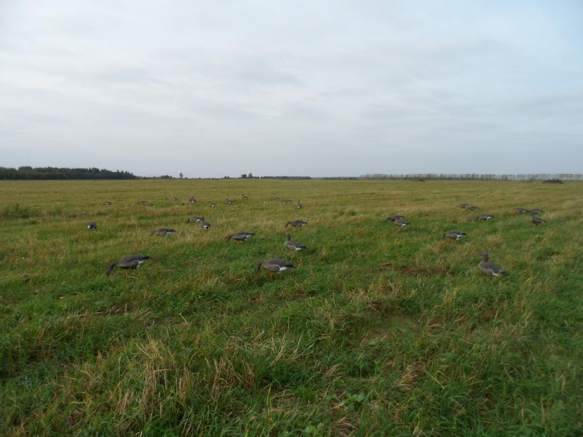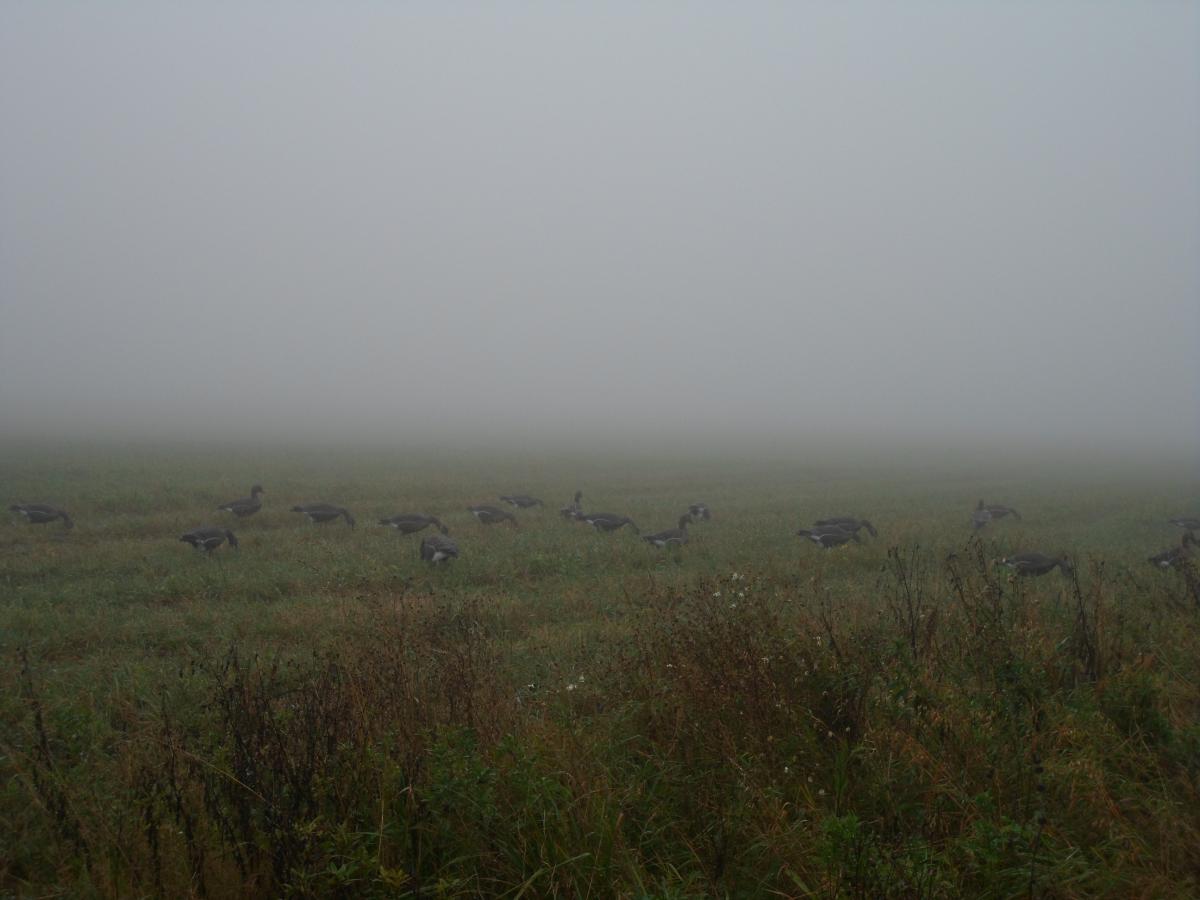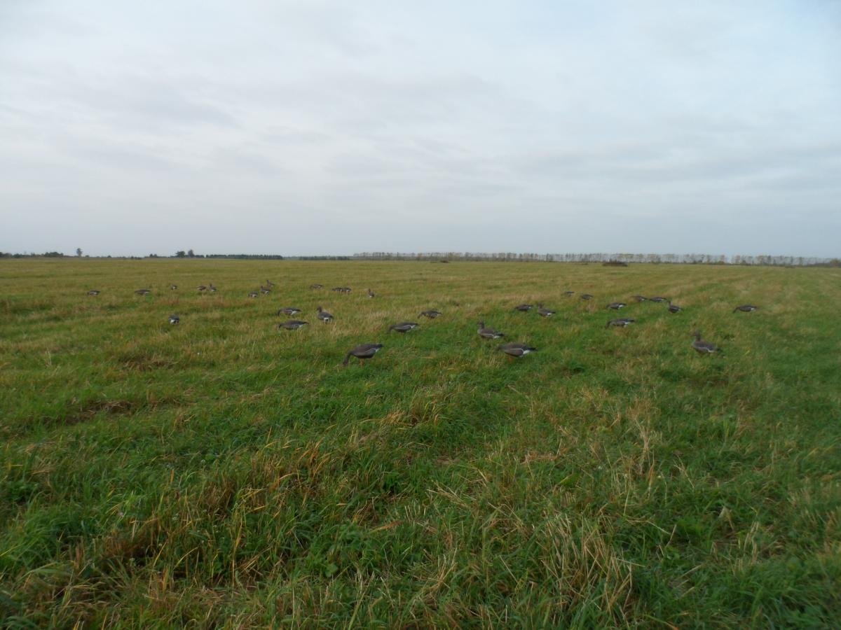 На второй день под вечер дело понемножку пошло. Я увидел стаю голов в 100 приземлившуюся на соседнее поле. Вот оно!