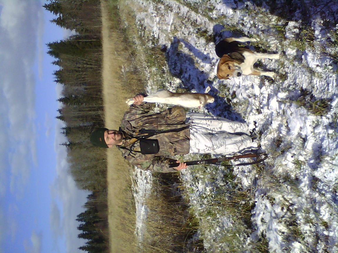 Выпускаем выжлеца и через 15 минут мы уже услышали то чего так долго ждали ....Залив ...По зрячему ...У отца выжлец не сильно скоростной и постепенно гон перешел в плавно приятно текущий .... Заяц ходил кругами в не сильно большом лесу ...Нас было четверо ...Мы стали подстраиваться под гон и ... Мне наконец повезло ...Матерый белячок вылетел на углу перелеска метрах в 150 от меня ...И пошел в мою сторону ...В стволах 5ка ...Жду...Вижу как он скрылся в низинке ...Сердечко учащенно бьется... Заяц покатил в мою сторону когда я его увидел ... Эти секунды длятся вечно ..Низинка оказалась не маленькой ..Неужели опять заскочил в лес и я тебя больше не увижу ???