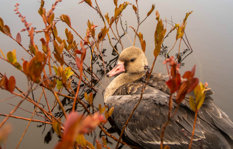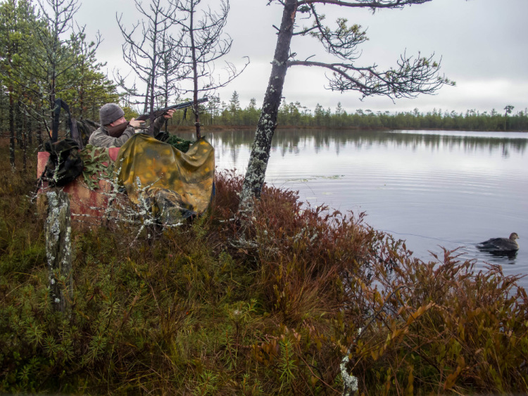 Как правило, подранок гуся сидит на мху, у уреза воды, и когда к нему приближаешься, просто отплывает от берега на пару метров и добрать его – не проблема.