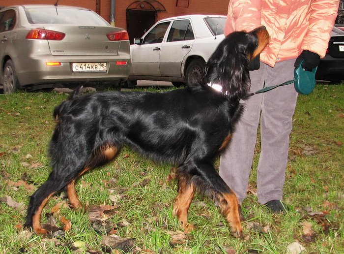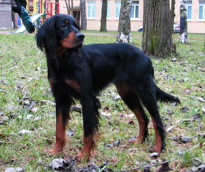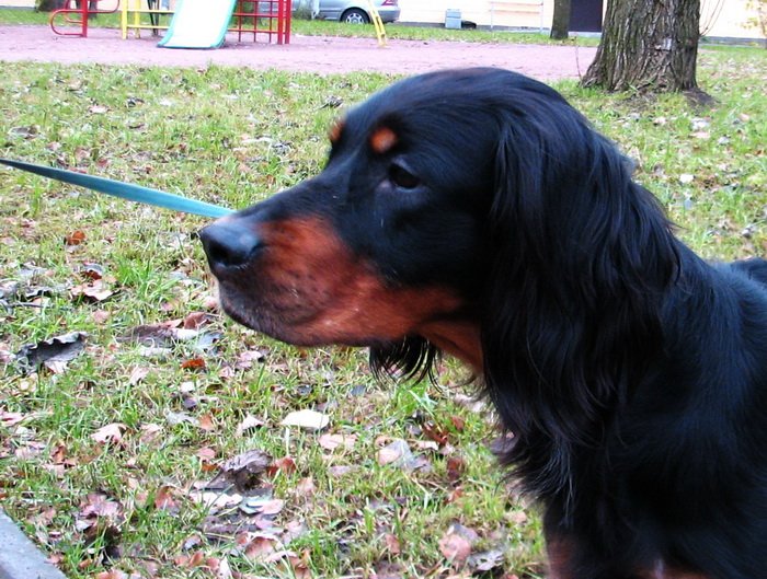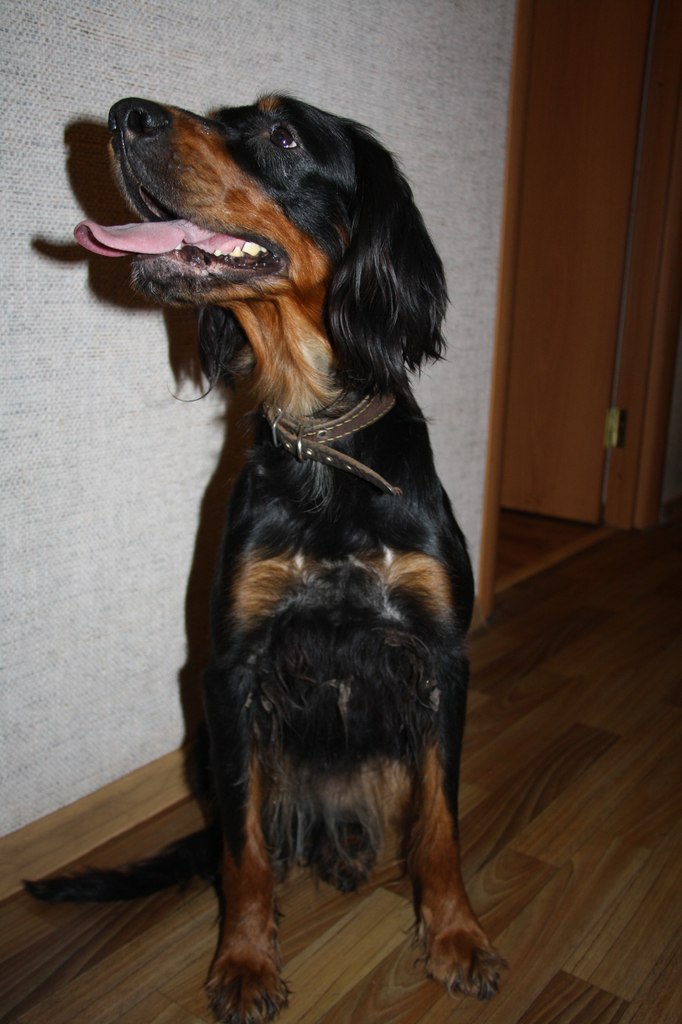 Сука сеттера-гордона, 3,5 года, разведение ООиР Петрозаводска. Найдена в Кировском р-не СПб, хозяевам не нужна.
