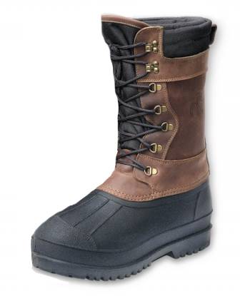 Голенище из натуральной кожи, язык из триплированного водоотталкивающего материала (кордура, поролон, трикотаж). Швы голенища проклеены специальным клеем. Нижняя часть сапога из вспен полиуретана. Подошва с глубоким, открытым протектором и шипами против скольжения. Вкладная жесткая двухслойная стелька.