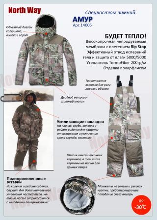 Костюм разработан для суровых климатических условий с низкими