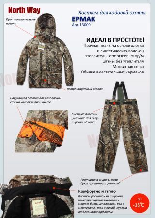 У меня покупатель выбирал костюм для охоты- купил разные - один на охоту- второй просто потому что он красивый и удобный (сказал жена на горных лыжах, ребёнок будет на ватрушке кататся, а я буду в Амуре с гордым видом прогуливатся или с собакой гулять когда холодно.